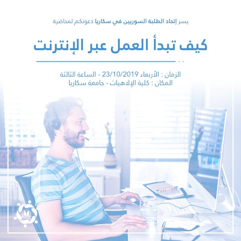 يسر اتحاد الطلبة السوريين في سكاريا دعوتكم لمحاضرة “كيف تبدأ العمل عبر الإنترنت” الزمان : الأربعاء 23.10.2019 الساعة 15:00 المكان : كلية الإلاهيات – جامعة سكاريا