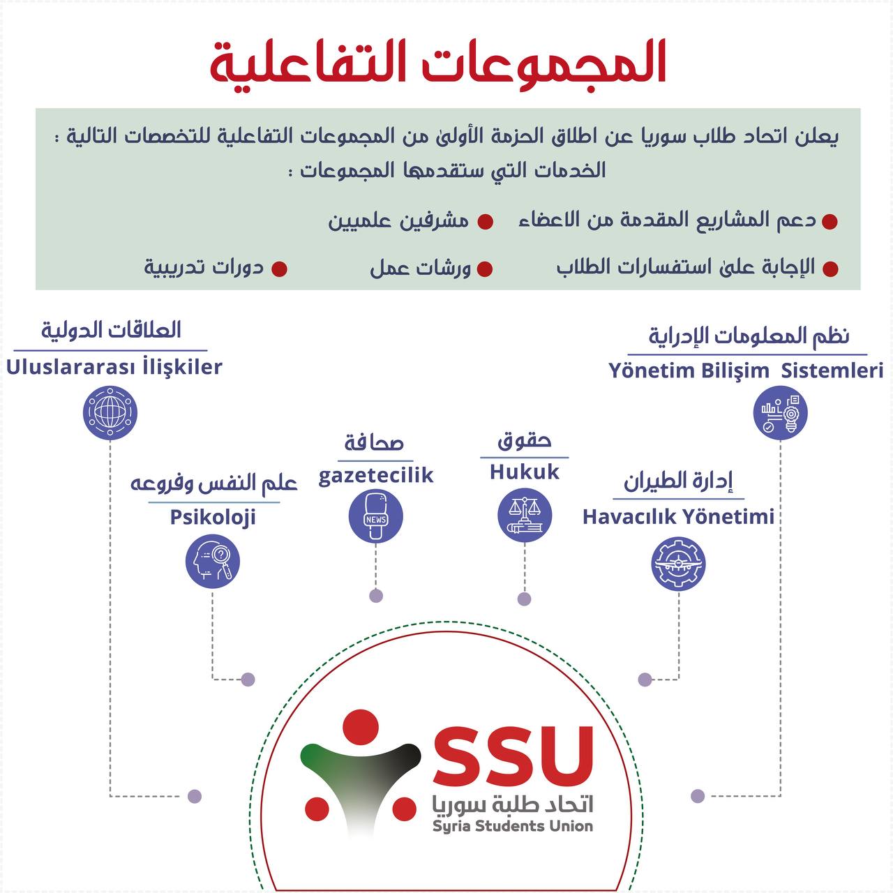 يعلن اتحاد طلبة سوريا عن إطلاق الحزمة الأولى من *المجموعات التفاعلية* للتخصصات الجامعية التالية : – [ Yönetim bilişim sistemleri [ نظم المعلومات الإداريه – [ Havacılık yönetimi [ إدارة الطيران – [ Hukuk [ الحقوق – [ Psikoloji [ علم النفس وفروعه – [ Gazetecilik [ الصحافة – [ Uluslararası ilişkiler [ العلاقات الدولية […]