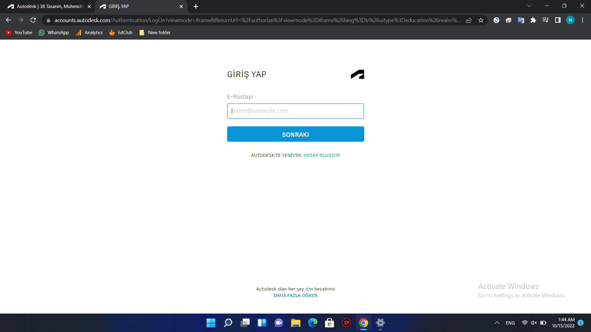 أولا: قم بزيارة موقع شركة أوتوديسك (إضغط هنا) ثم نضعط على زر Oturum aç