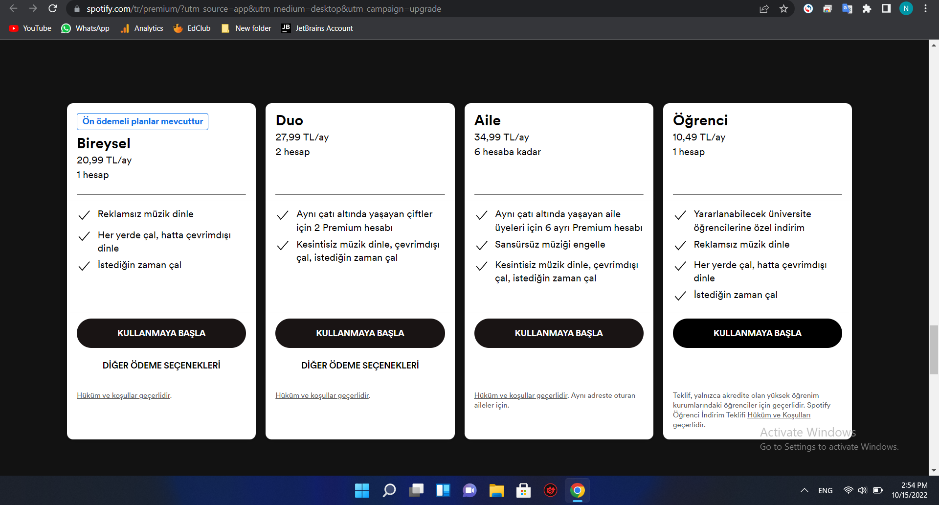ثانياً: بعد تسجيل الدخول قم بالضغط على زر Upgrade الموجود في يمين الصفحة. ومن ثم إختر باقة الطالب Öğrenci.