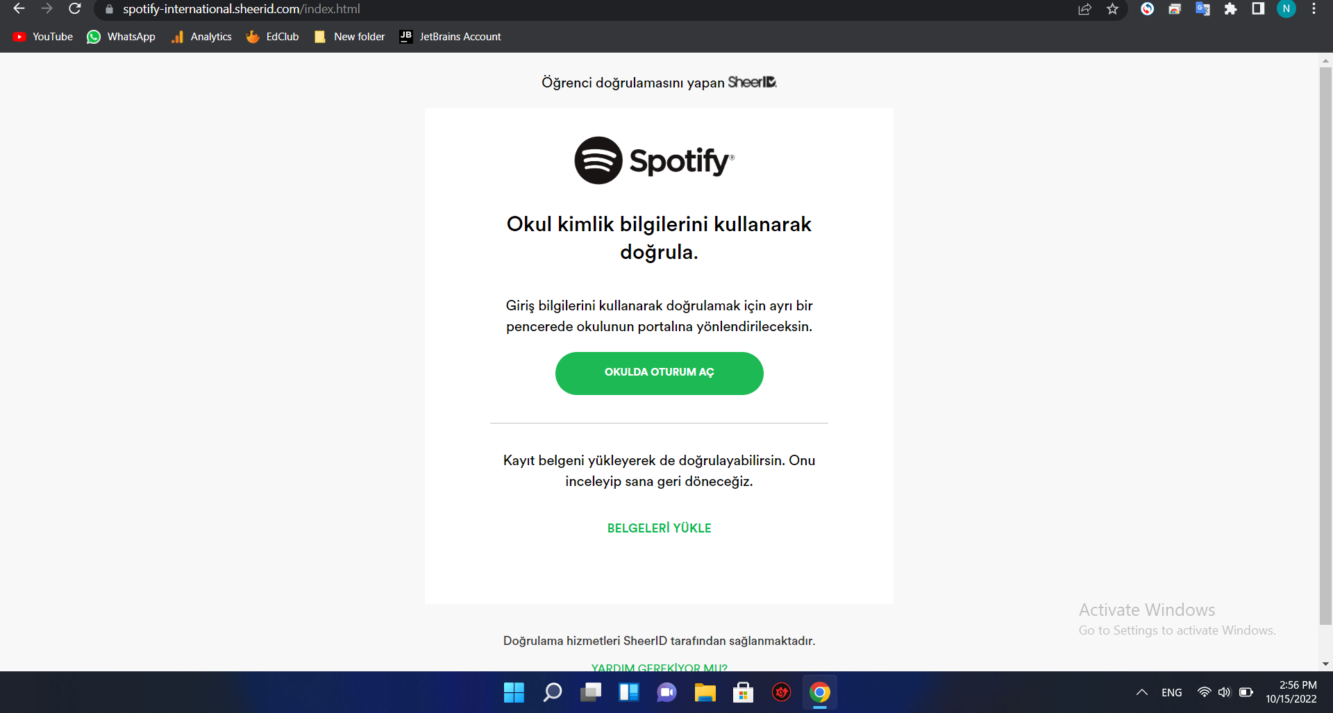 رابعاً: يجب تاكيد أنك طالب إما عن طريق تسجيل الدخول إلى حساب الجامعية (الخيار الأول) أو عن طريق تحميل أي وثيقة مثل بطاقة الطالب أو وثيقة الطالب ( الخيار الثاني)